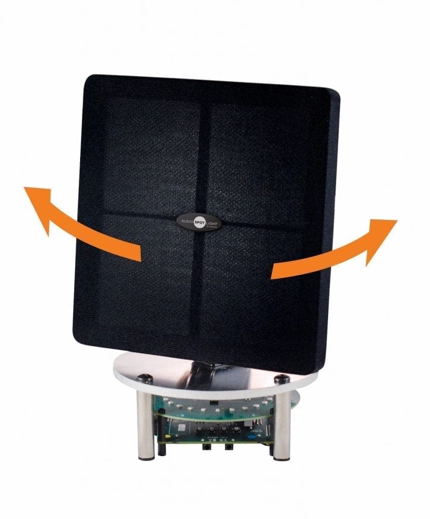 Unlike standard devices, where the personal assistant announces the answer to the room, this technology lets the personal assistant pinpoint the exact direction of an audio reply within a given space – it directs the answer at the person who asked the question in a narrow laser-like beam of sound, so the user gets high-quality, precisely controlled sound with none of the noise.TM